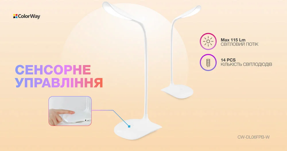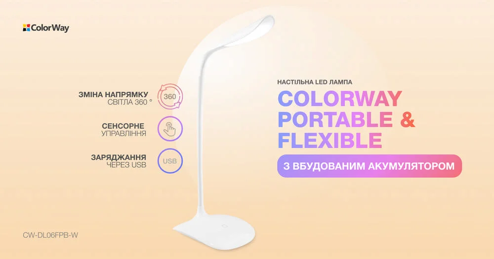 Настільна LED лампа ColorWay Portable & Flexible з вбудованим акумулятором біла (CW-DL06FPB-W)
