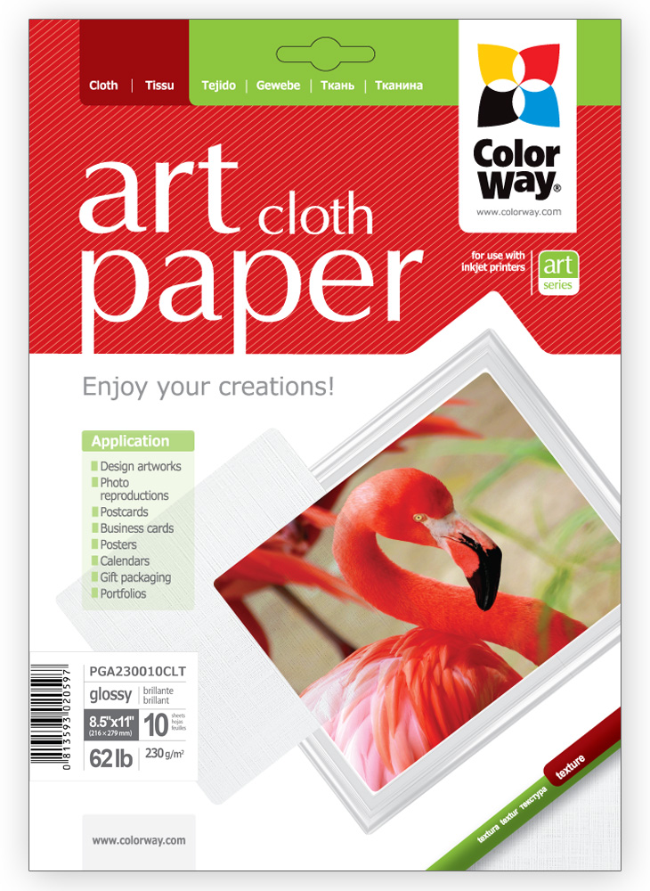 Фотопапір ColorWay ART глянцевий фактура "тканина" 230 г/м², Letter, 10 арк. (PGA230010CLT)