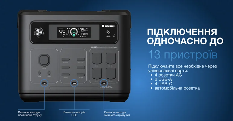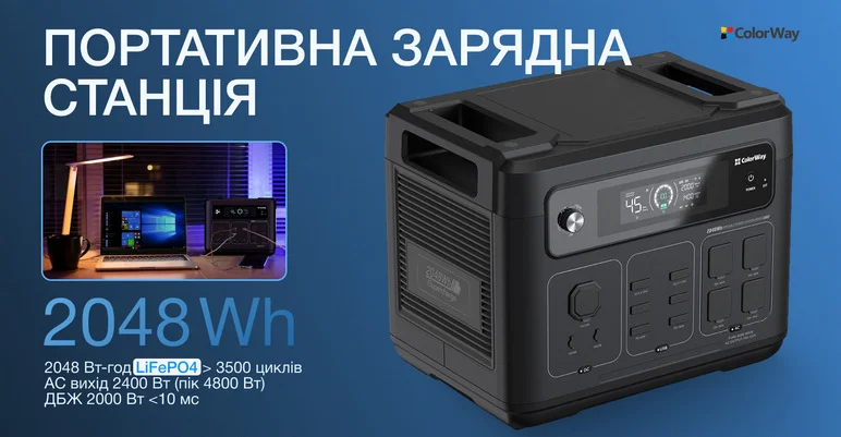 Портативна зарядна станція ColorWay 2400Вт/2048Вт·год / LiFePO4 (CW-PR-2K2W-01)