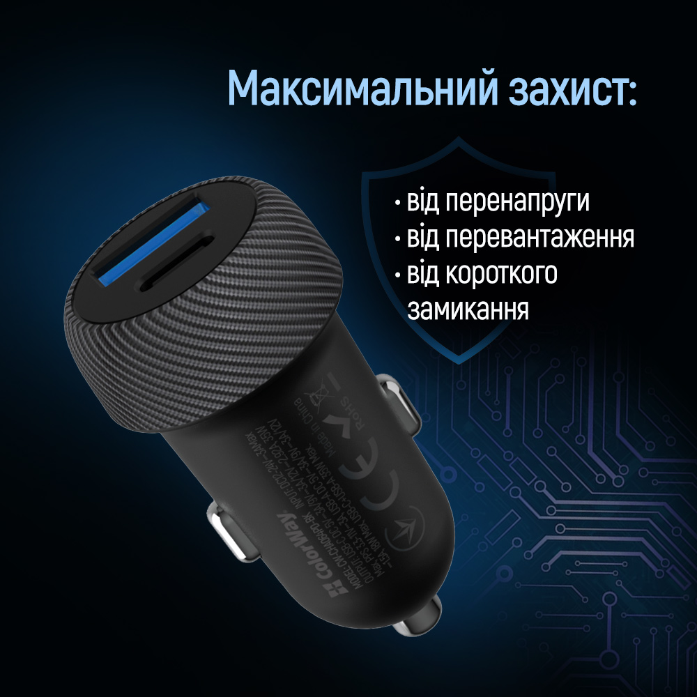 | Назва: | Автомобільний зарядний пристрій ColorWay Power Delivery Port PPS USB (USB-A + USB-C) (60W) чорний |