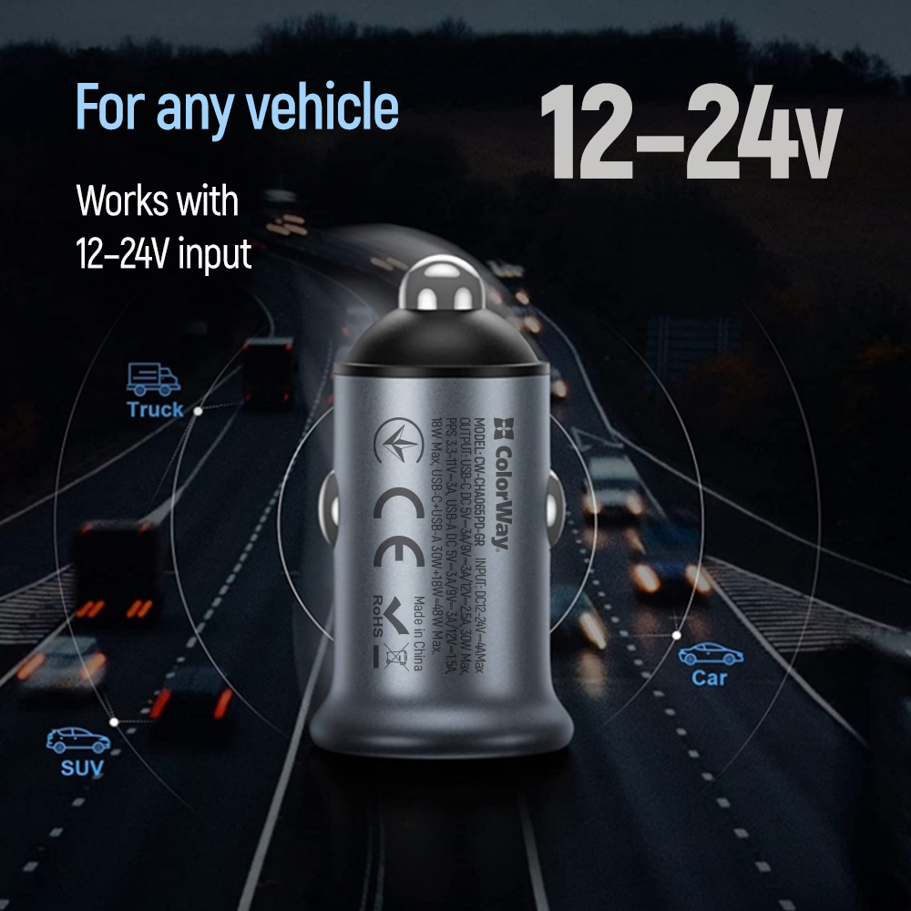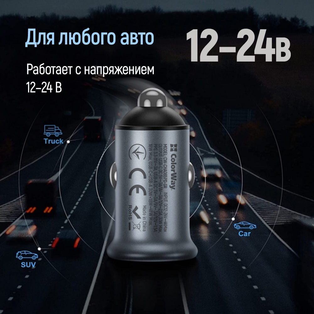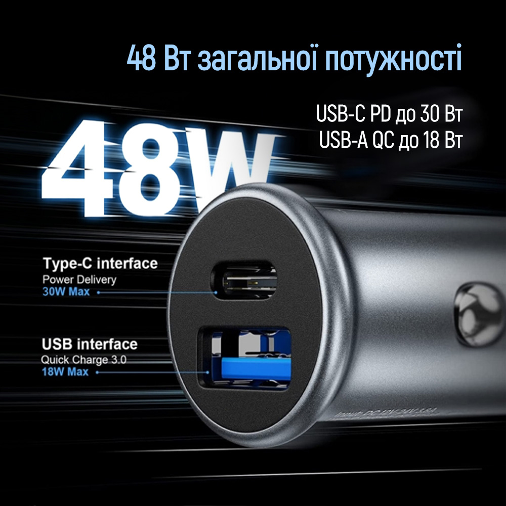 | Назва: | Автомобільний зарядний пристрій ColorWay 48W (30+18W), сірий |