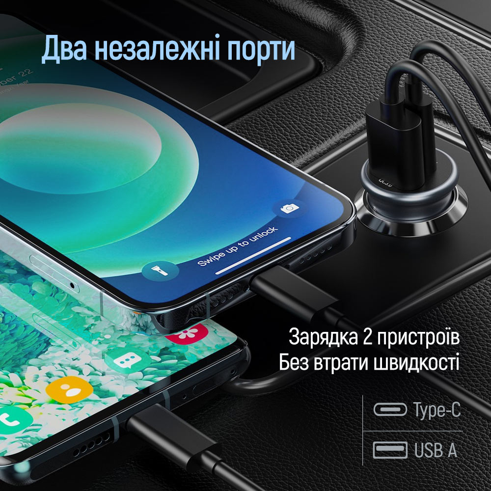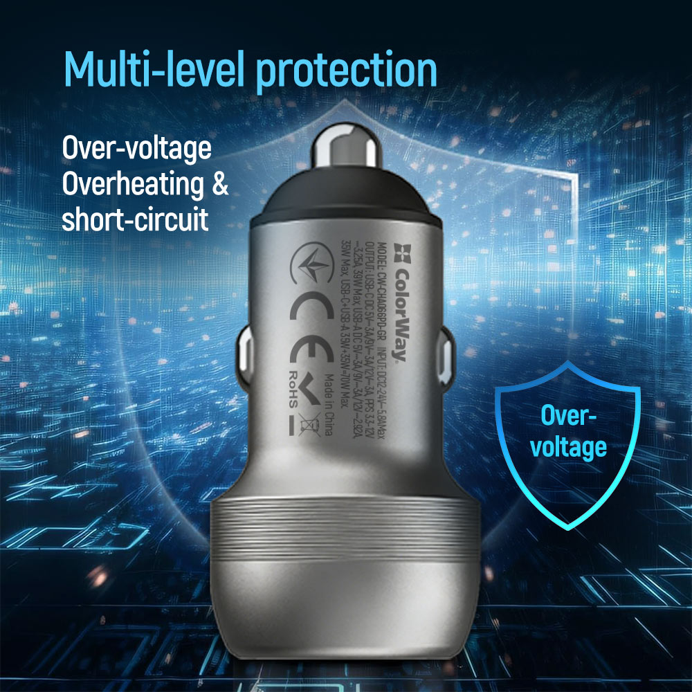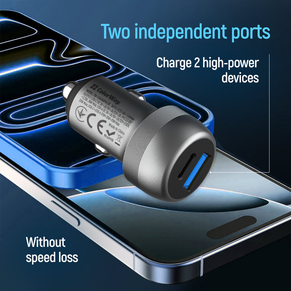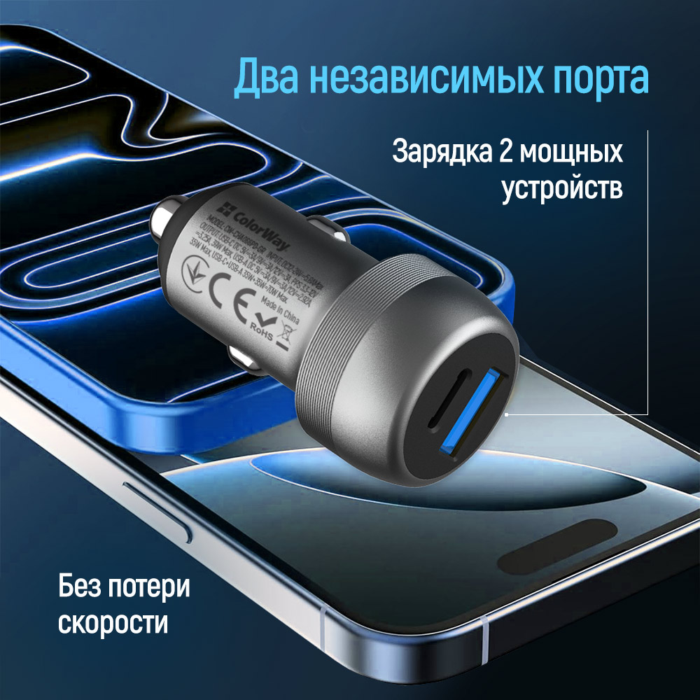 | Назва: | Автомобільний зарядний пристрій ColorWay 2USB (Type-C PD35W + USB QC3.0 35W) (70W) сірий |